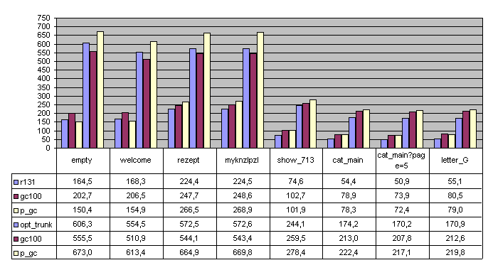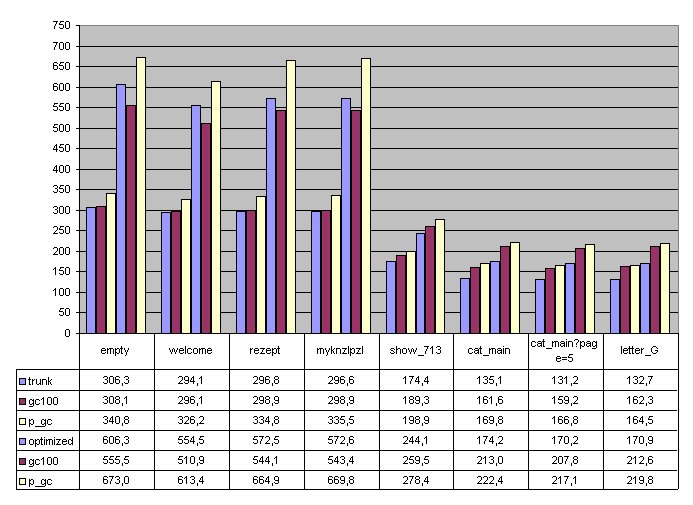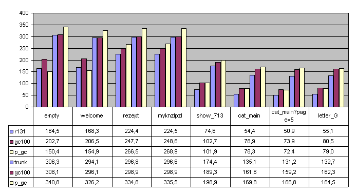 This one shows how well 0.14 does against 0.13.1, with no options, gc100 and patched GC. The numbers are requests per second.